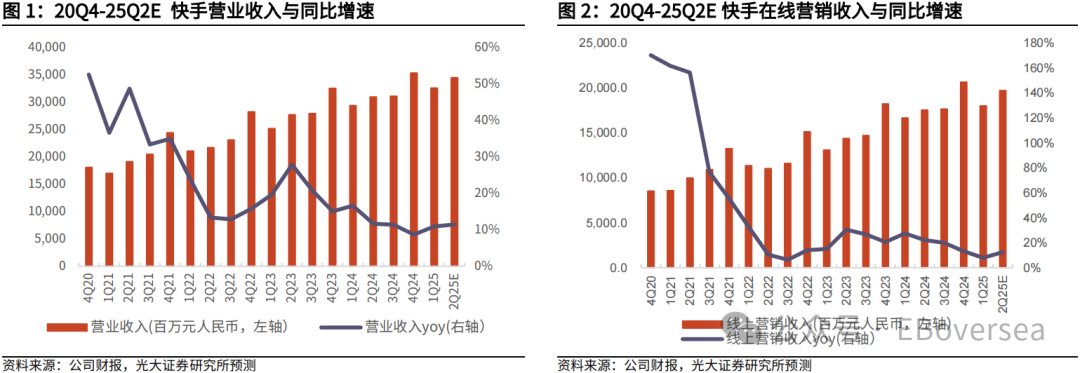 1)我们预计公司25Q2线上营销收入达196.9亿元(yoy+12.4%),受益于用户总时长增长与营销效率优化,因高基数效应有所减弱,增速快于Q1的8%。