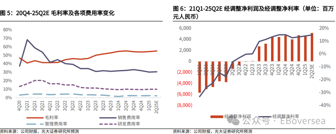 2)预计25Q2销售/管理/研发费用率分别为30.7%/2.4%/10.1%(分别yoy -1.7pcts/ -0.2pcts/ -0.1pcts),研发费用率预计同比略降,降本增效的同时,与可灵等AI业务相关的团队投入持续。